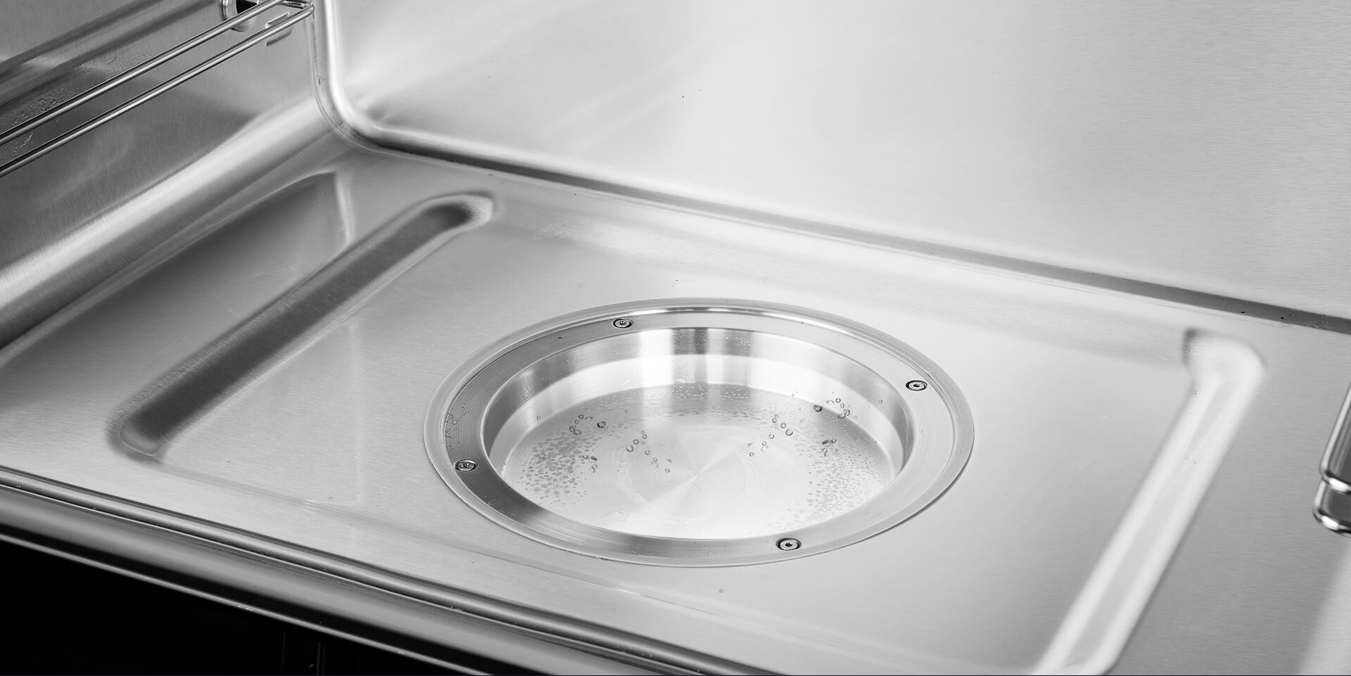 蒸箱内部无卫生死角,无缝内胆,卡扣式易拆洗蒸架。